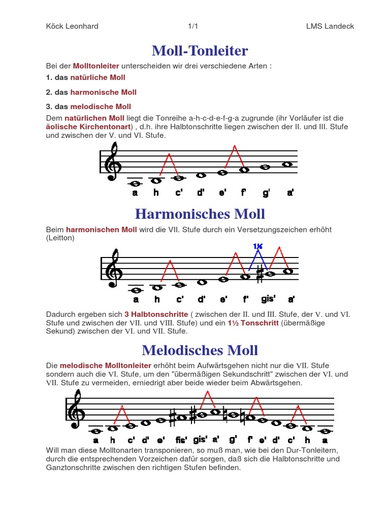 Molltonleiter Naturlich Harmonisch Und Melodisch